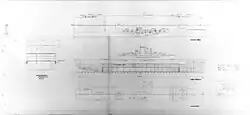 Die Konstruktionsverdrängung lag 1944 bei 27.100 ts, die Einsatzverdrängung bei etwa 33.000 tn.l. Der Tiefgang lag zwischen 7,0 und 8,7 Metern. Nach den Umbauten erhöhte sich die Leerverdrängung auf 33.000 tn.l., die Einsatzverdrängung auf 40.000 bis 45.000 tn.l. Der Tiefgang stieg auf 9,4 Meter.[10]