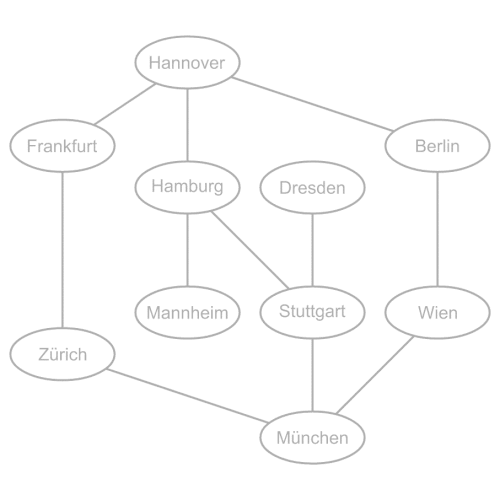 - Zürich (Nachbarknoten von Frankfurt, Rekursionstiefe 2)
