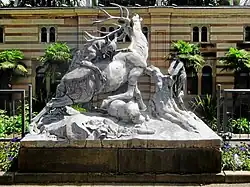 | 7 | Hirsch von drei Wölfen angefallen | 1852 | Zinkguss | in den Terrassenanlagen |