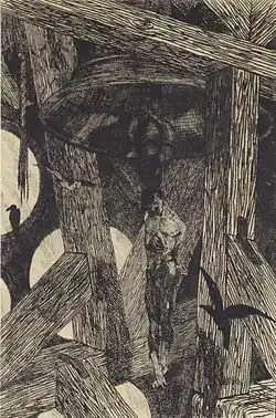 1867, Félicien Rops, Der Gehenkte an der Glocke, Illustration zu Die Geschichte von Tyll Ulenspiegel und Lamme Goedzak