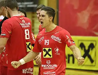 - ↑ Spielerprofil:TIMO GESSLBAUER. handball-euro2014.at, ehemals im (nicht mehr online verfügbar); abgerufen am 7. September 2015. (Seite nicht mehr abrufbar. Suche in Webarchiven) Info: Der Link wurde automatisch als defekt markiert. Bitte prüfe den Link gemäß Anleitung und entferne dann diesen Hinweis.