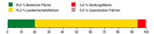Es besteht zu 19,6 % aus bestockter Fläche, zu 74,2 % aus Landwirtschaftsfläche, zu 5,6 % aus Siedlungsfläche und zu 0,6 % aus unproduktiven Flächen.