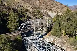 - ↑ E. C. Bissell: Last of the Feather River Canyon Highway Bridges Completed at Tobin. In: California Highways and Public Works. Vol. 14, Nr. 3, 1936, S. 10 f.