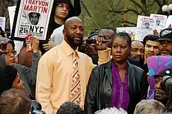 In den USA kam es zwei Wochen nach dem Tod Trayvon Martins zu landesweiten Demonstrationen gegen Rassendiskriminierung und Polizeiwillkür.[1] In diesem Zusammenhang nahm das FBI Ermittlungen auf, die sich gegen den Täter richten und auch das Verhalten der Polizeibeamten vor Ort untersuchen sollen. Von entscheidender Bedeutung ist dabei, ob die Tat einen rassistischen Hintergrund hat, da für die Verfolgung eines sogenannten hate crime Bundesbehörden zuständig wären.[73] Ein langjähriger Freund Zimmermans erklärte, dass dieser sich ihm gegenüber, selbst schwarz, nie rassistisch geäußert habe.[74] Am 24. März 2012 protestierten erneut Tausende Demonstranten in Washington, New York, Chicago und Tampa gegen rassistische Tendenzen in den USA.[75] Viele Demonstranten traten dabei ostentativ in Kapuzenpullover (hooded sweatshirts, hoodies) auf, wie sie gerne von afroamerikanischen Jugendlichen getragen werden.[76]
