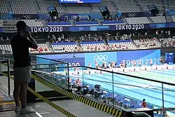 Das Tokyo Aquatics Centre (japanisch 東京アクアティクスセンター Tōkyō akuatikusu sentā) ist eine Schwimmhalle im „Wald-von-Tatsumi-Strandpark“ (辰巳の森海浜公園 Tatsumi no mori kaihin kōen) im Süden Tokios. Er liegt im Stadtteil Tatsumi des Bezirks Kōtō im Osten der Präfektur Tokio. Baubeginn war im April 2017, die Fertigstellung fand 2020 statt. Insgesamt beliefen sich die Baukosten auf 56,7 Mrd. ¥ (471 Mio. €). Die für den 22. März 2020 geplante Eröffnung wurde wegen der COVID-19-Pandemie verschoben und fand am 26. Oktober 2020 ohne Publikum statt.[1]
