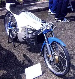 - ↑ Die Kreidler hatte zu diesem Zeitpunkt 22,5 PS bei 17.000 min−1