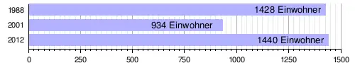 Im Hauptort lebten bei der Volkszählung 2012 1440 Einwohner in 142 Haushalten,[1] bei der Volkszählung 2001 934 in 96 Haushalten[16] und bei der Volkszählung 1988 1428 in 117 Haushalten.[17]