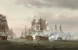 ![]() Die Tonnant (vorne) im Gefecht mit der spanischen Monarca in der Schlacht von Trafalgar.