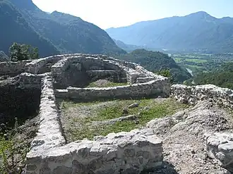- ↑ a b c d e Slavko Ciglenečki: Castra und Höhensiedlungen vom 3. bis 6. Jahrhundert in Slowenien (S. 511 ff.). In: Heiko Steuer, Volker Bierbrauer (Hrsg.): Höhensiedlungen zwischen Antike und Mittelalter von den Ardennen bis zur Adria. Unter Mitarbeit von Michael Hoeper. de Gruyter, Berlin u. a. 2008, ISBN 978-3-11-020235-9, (Reallexikon der Germanischen Altertumskunde Ergänzungsbände 58).