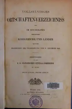 - Vollständiges Ortschaften-Verzeichnis der im Reichsrathe vertretenen Königreiche und Länder nach den Ergebnissen der Volkszählung vom 31. December 1880. Herausgegeben von der K. K. statistischen Central-Commission in Wien. 2. Ausgabe, Wien 1882, (Kärnten/Koroška S. 109–128).[2]