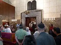 Im Mittelalter existierte meist nur eine Nische in der Ostwand, in der die Lade aufgestellt wurde, während in der Neuzeit ein hölzerner Schrank Verwendung findet, der von einer Rahmenarchitektur umgeben ist.[1] Bis heute steht der Schrein an der Wand der Synagoge, die gegen Jerusalem gerichtet ist, und wird mit einem bestickten Vorhang (Parochet) bedeckt.