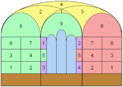 - ↑ Für die Reihenfolge der Ausmalung vgl. die Diagramme zu den Tagwerken (italienisch: giornate) bei Cristina Danti, Giuseppe Ruffa: Osservazioni sugli affreschi di Domenico Ghirlandaio nella chiesa di Santa Maria Novella in Firenze. Il censimento delle tecniche di tracciamento del disegno preparatorio. In: Cristina Danti, Mauro Matteini, Arcangelo Moles (Hrsg.): Le pitture murali – tecniche, problemi, conservazione. Centro Di, Florenz 1990, ISBN 88-7038-196-X, S. 39–58, S. 58, Abb. 6–7.
