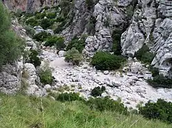 Im Bachbett wechseln Abschnitte von grobem Kies mit steinigen Stellen, an denen große Felsblöcke dem Wasser den Weg versperren. Mitunter sind durch Auswaschungen Wannen entstanden, in denen das Wasser auch noch einige Zeit nach den letzten Regenfällen im Schatten der Felswände steht. Am Rande der Schlucht haben sich kleine Höhlen ausgebildet, wie die Cova des Soldat Pelut oder die Cova des Romagueral („Brombeerhöhle“), die jedoch nicht sehr tief sind. Anders die Cova de sa Campana („Glockenhöhle“) etwa einen Kilometer vor der Mündung des Baches und 450 Meter südwestlich der Schlucht in den Bergen, die mit 317 Metern die tiefste Höhle der Balearen ist und in der dicke Tropfsteine entstanden.[4]