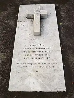 Toru Dutt starb im Alter von 21 Jahren. Sie wurde auf dem christlichen Maniktala-Friedhof in Kalkutta beigesetzt, wo ihr Grabstein besichtigt werden kann.