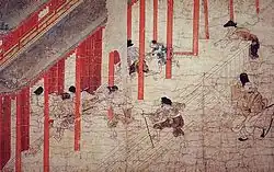 - Tokiwa (Fujiwara no) Mitsunaga (常盤・藤原の光長; aktiv um 1173). Er soll des Fujiwara-no-Takachika gewesen sein, sonst ist über sein Leben wenig bekannt, auch kann kein Werk ihm zweifelsfrei zugeschrieben werden. Die Lebhaftigkeit seiner Figuren wird gerühmt, auch seine Fähigkeit, große Gruppen in Aktion zu malen. Ein gutes Beispiel ist die große Bildrolle „Ban Dainagon“ (伴大納言) aus der Sakai-Sammlung.[1][2]