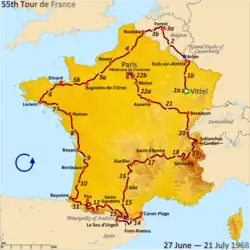 Die 55. Tour de France fand vom 27. Juni bis zum 21. Juli 1968 statt und führte über 22 Etappen mit 4.685 km.
