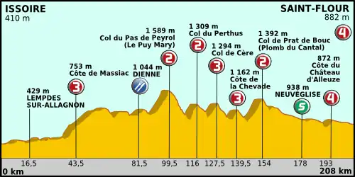 Saint-Flour Montée des Orgues Kategorie 4 nach 208 km auf 882 m 1,6 km bei 6,1 %