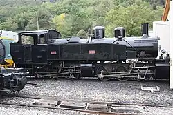 • 403: Die Mallet-Tenderlokomotive mit der Achsfolge CC (franz.: 030-030-T) wurde mit ihren ehemaligen Schwesterloks 401, 402 und 404 bis 408 von der schweizerischen Lokomotiv- und Maschinenfabrik SLM Winterthur für das Netz der CFD konstruiert.[17] Die 1903 ausgelieferte Maschine ist 10,71 Meter lang und hat ein Leergewicht von 36,3 Tonnen.[18] Sie kann bergwärts auf der kurvenreichen Strecke 200 Tonnen schwere 14-Wagen-Züge befördern.