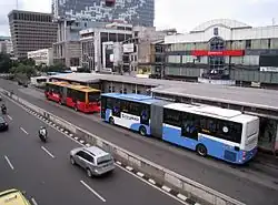 • Die Netzkonfiguration sorgt dafür, dass an den Zwischenhaltestellen ohnehin nicht allzu viel Fahrgastwechsel stattfindet. Hauptsächlich werden die Relationen zwischen den zentralen Haltestellen Stasiun Kota Jakarta bzw. Harmoni und den an den Endstellen gelegenen Busbahnhöfen (Terminals) genutzt, von denen aus der Verkehr durch jeweils mehrere Dutzend Stadtbuslinien weiter in die einzelnen Stadtteile verteilt wird bzw. die Fernbusse nach ganz Java abgehen. An den Zwischenhaltestellen findet hingegen nur wenig Verkehr statt.