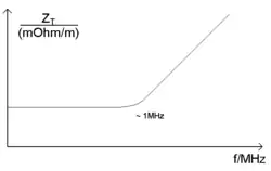 Typische Werte der Transferimpedanz für Geflechtschirme beginnen für Gleichstrom bei 10 mΩ/m bis 20 mΩ/m. Bei tiefen Frequenzen bis ca. 100 kHz entspricht der Wert der Transferimpedanz etwa dem Gleichstromwiderstand des Schirms. Dieser Wert bleibt bis ungefähr 1 MHz konstant, da bis zu dieser Frequenz die galvanische Kopplung die Einkopplung der Störspannung dominiert.