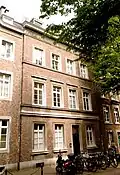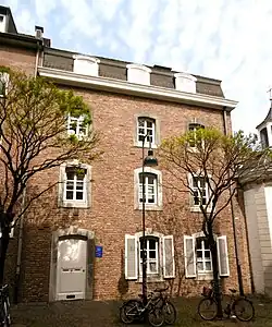19. Jh. Haus Eilfschornsteinstraße 25 (Lage) transloziert zum Hof anlässlich des dortigen Neubaus durch Leo Hugot im Jahr 1968. Die Fassade von der Eilfschornsteinstraße 25 erhielt hier bewusst keinen weißen Anstrich, sondern blieb steinsichtig, dadurch konnte das benachbarte Quirinusbad noch stärker betont werden.