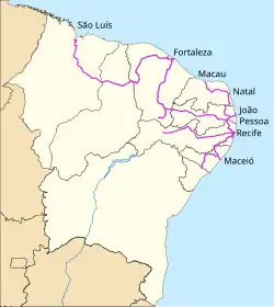 Seit 2006 errichtet die Transnordestina eine neue T-förmige Breitspurstrecke (1600 mm) zu den Häfen Pecém und Suape.[1] Das Projekt ist jedoch mehrere Jahre in Verzug.[2]