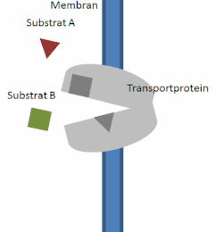• Antiport, Gegentransport (gleichzeitiger Transport von zwei/drei verschiedenen Teilchen in gegensätzliche Richtung durch Antiporter)