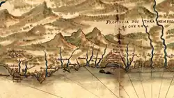 Karte der Küste von Ceará aus dem Jahr 1629, auf der die Herrschaftsgebiete der Tremembé eingezeichnet sind