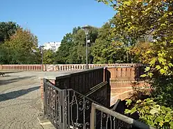 Die Treptower Brücke führt über den Flutgraben des Landwehrkanals zur Südspitze der Lohmühleninsel und verbindet Kreuzberg mit Alt-Treptow. Die denkmalgeschützte Straßenbrücke wird aufgrund des heute parkähnlichen Charakters der Lohmühleninsel nicht mehr befahren. Sie zählt zu den ältesten erhaltenen Berliner Ziegelbogenbrücken.[1]