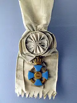 Für militärische Verdienste konnte der Orden auch mit gekreuzten Schwertern durch die Kreuzwinkel verliehen werden.