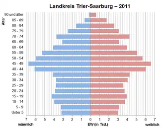 - ↑ a b Datenbank Zensus 2011, Landkreis Trier-Saarburg