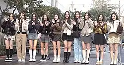 obere Reihe, L–R: SooMin, JiYeon, DaHyun, JooBin, Sullin, Kaede, Xinyu, Nien, JiWoo, NaKyoung, ChaeYeon, HyeRin