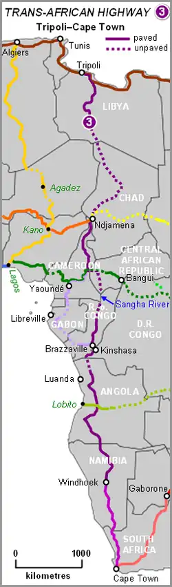 Der Tripolis-Windhoek-(Kapstadt)-Highway ist Nr. 3 der Trans-African Highways (TAH), eines internationalen Fernstraßennetzes, das die Wirtschaftskommission für Afrika (UNECA), die Afrikanische Entwicklungsbank (ADB) und die Afrikanische Union entwickeln. Die 10.808 km lange Route hat von allen TAHs die längsten fehlenden Abschnitte und benötigt die meisten Straßenneubauten.