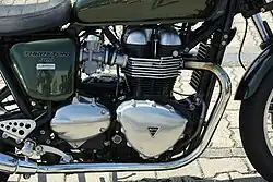Thruxton, Baujahr bis 2006, ab Baujahr 2007 sind Farben der Kotflügel gleich dem Tank und der Motorblock ist nun schwarz. | |