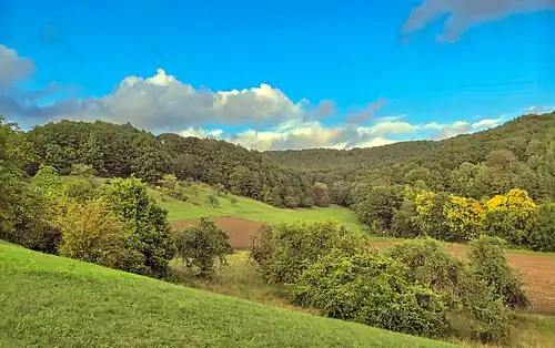 Das Naturschutzgebiet Trockenhänge und Urwiese bei Junkersdorf liegt im Landkreis Haßberge in Unterfranken.