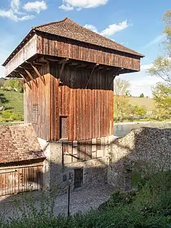 - Hänkiturm in Diessenhofen, Kanton Thurgau; 1828 auf Stadtmauerturm erstellte Holzkonstruktion einer Färberei, 1895 umgenutzt
