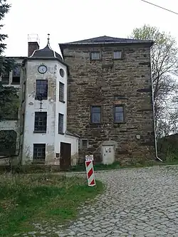 - Trockenturm einer Tuchbleicherei in Aue, Sachsen; um zwei Stockwerke verringert; nach Restaurierung Büro- und Geschäftsgebäude