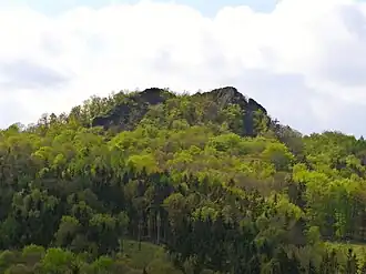 Der Berg ist nach kurzem steilem Anstieg auf einem gelb markierten Weg von Třebušín oder von Staňkovice erreichbar. Die Gipfelregion setzt sich aus drei sehenswerten Basaltformationen zusammen. Vom Gipfel besteht eine durch Bäume nicht gehinderte Sicht auf die nähere Umgebung, unter anderem auf den Kalich (Kelchberg), die Panna und den Sedlo (Hoher Geltsch).