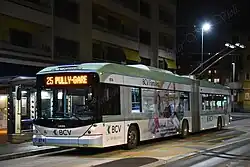 Der Trolleybus Lausanne ist das grösste und zugleich älteste Trolleybus-Netz der Schweiz. Es wurde am 2. Oktober 1932 eröffnet und ersetzte bis 1964 sukzessive die frühere Strassenbahn von 1896.[1] Heute betreibt das Verkehrsunternehmen Transports publics de la région lausannoise – abgekürzt TL, ehemals Tramways Lausannois – in Lausanne und den Nachbargemeinden Le Mont-sur-Lausanne, Lutry, Paudex, Prilly, Pully und Renens zehn Trolleybus-Linien. Ergänzt werden sie durch diverse Autobus-Linien und die Métro Lausanne. Nach Streckeneinstellungen nicht mehr bedient werden die Orte Cugy, Epalinges und Froideville. Sie sind durch die Linie M2 der Métro Lausanne (Epalinges) bzw. die Autobus-Linie 60 (Cugy und Froideville) angebunden.