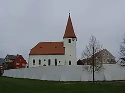 Die St. Emmeramkirche wurde um 1040 geweiht. 1689 bis 1702 erfolgte ein Bau oder Umbau des Kirchturms.[8] 1702 wurde die Kanzel, 1704 die Orgel und 1707 der Hochaltar aufgestellt. Der Turm wird von einem Spitzhelm gekrönt.