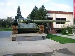 Zur Erinnerung an die Verteidigung der Straße in der Schlacht um Vukovar steht in der Trpinska cesta ein einstöckiger Gedenkraum für die kroatischen Verteidiger (kroatisch Spomen soba hrvatskih branitelja), daneben ein Denkmal für Blago Zadro sowie als Denkmal ein in der Schlacht kampfunfähig gemachter M-84-Panzer.[8] Das Panzerdenkmal trägt eine bronzene Gedenktafel mit dem kroatischen Staatswappen und der Inschrift: