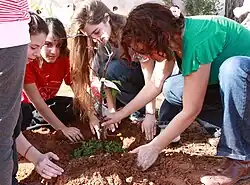Kinder in Pardes Chana-Karkur pflanzen einen Baum an Tu biSchevat