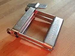 Die Tubenpresse ist ein aus Kunststoff oder Metall bestehendes, handliches Werkzeug zum nahezu restlosen Entleeren von Tuben jeglicher Art. Dazu wird die Tube mit dem gefalzten oder verschweißten Ende zwischen die zwei gerändelten Walzen eingeführt und von diesen danach zusammengepresst. Durch Betätigen eines Handrades wird die Tube Stück für Stück durch die Walzen gepresst und der Tubeninhalt in Richtung der Tubenöffnung gedrückt.