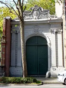 Das um 1773 erbaute korbbogige Portal wird Jakob Couven oder Joseph Moretti zugeschrieben. Es ist eingerahmt von zwei auf hohen Sockeln errichteten Doppelpilastern mit ionischen Kapitellen. Im darüber liegenden geschwungenen Gebälk befindet sich mittig das Wappenschild, auf dem sich seit 1857 das Wappen der Familie Lochner mit Schwert und Kronen befindet. Rückseitig verfügt das Tor durch den Anbau des Kutscherhauses anstelle der Pilaster nur über eine Halbsäule auf der freien Seite und wird bekrönt durch ein dreieckiges Tympanon mit einem halbkreisförmigen Fenster im Giebelfeld.
