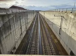 Der minimale Radius der Gleisanlagen liegt in diesem Abschnitt bei 1700 m, bei einer Entwurfsgeschwindigkeit von 220 km/h.[1]