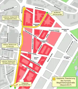 Tunnel Wagenladungsstraße ist ein Straßentunnel in Stuttgart-Mitte, der sich zum Teil in der Planungsphase befindet. Er ist in drei Teilabschnitte gegliedert, von denen bereits zwei fertiggestellt wurden und der Erschließung des Europaviertels dienen.[4][6]