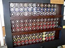 Der erste Prototyp der Bombe, genannt Victory (deutsch „Sieg“), noch ohne diagonal board (deutsch „Diagonalbrett“),[7] wurde vom britischen Ingenieur Harold Keen und seinem Team aus zwölf Mitarbeitern der British Tabulating Machine Company (deutsch „Britische Tabelliermaschinen-Gesellschaft“) bereits im Frühjahr 1940 fertiggestellt.[8] Das Gerät, das auf Turings Konzept der Letchworth-Enigma basierte, wurde anschließend in Bletchley Park erfolgreich zur Entzifferung von deutschen Enigma-Funksprüchen eingesetzt. Nachdem durch Gordon Welchmans Erfindung des „Diagonalbretts“ die Effizienz der Maschine wesentlich verbessert werden konnte, wurde die Produktion erheblich gesteigert. Unter enger Zusammenarbeit des Kryptoanalytikers Welchman und des Elektroingenieurs Keen[9] entstanden bis Ende 1941 unter dem Decknamen „CANTAB“ zwölf weitere Exemplare[10] und bis zum Kriegsende mehr als 210 Bombes.[11]