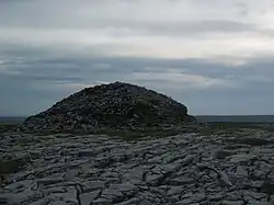 Am westlichen Ende der Gipfelterrasse liegt ein überdurchschnittlich großer Cairn von 15 m Durchmesser und 4,5 m Höhe, ähnlich dem „Carn Bodhar“ auf dem Slievecarron. Diese Art Tumuli enthalten Steinkisten mit relativ wertlosen Beigaben. Trotzdem ist der Cairn auf dem Turlough Hill geplündert worden.