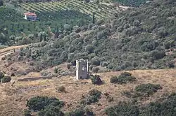 Oftmals wurde der Turm der Fränkischen oder Venezianischen Zeit zugeordnet. Es handelt sich jedoch eindeutig um ein osmanisches Bauwerk. Der Turm diente auch keinem militärischen Zweck. Sowohl die Schießscharten als auch die Zinnen sind für die Verteidigung eher ungeeignet. Auch die Lage auf einem gut zugänglichen Hügel und die dünnen Mauern führen zu dieser Einschätzung. Sehr wahrscheinlich handelt es sich um den Wohnturm (griechisch πύργος; griechisch κουλας oder türk. kule) eines Sipahi, Agha oder Gutsbesitzers. Solche Wohntürme waren sehr zahlreich und wurden von Reisenden des 19. Jahrhunderts beschrieben und oft auch als Residenz genutzt. Ein weiterer Wohnturm soll zum Beispiel an der Küste bei dem Ort Myli gestanden haben.