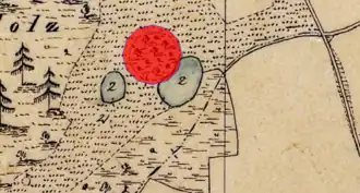Lageplan des Turmhügels Bach auf dem Urkataster von Bayern | |